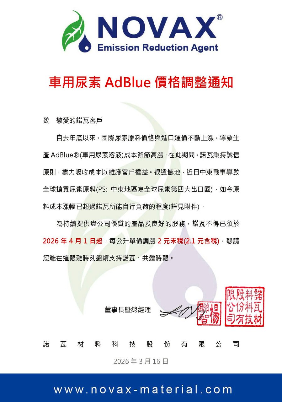 【尿素公告】價格調整通知